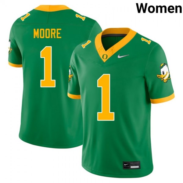 • Women College Football Oregon Ducks #1 Dakorien Moore Embroidery Jersey - Green
